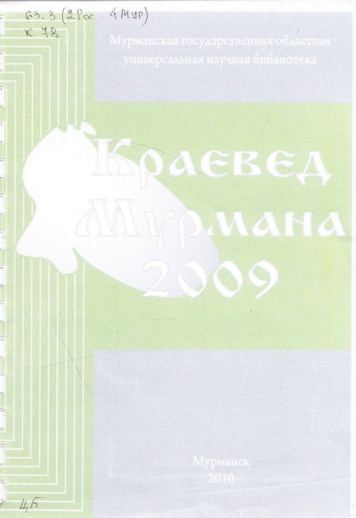 "Краевед Мурмана - 2009" [Текст] : сборник материалов областного конкурса, посвященного 65-летию разгрома немецко-фашистских войск в Заполярье / Мурманская гос. обл. универс. науч. б-ка, 2010. - 200 с.